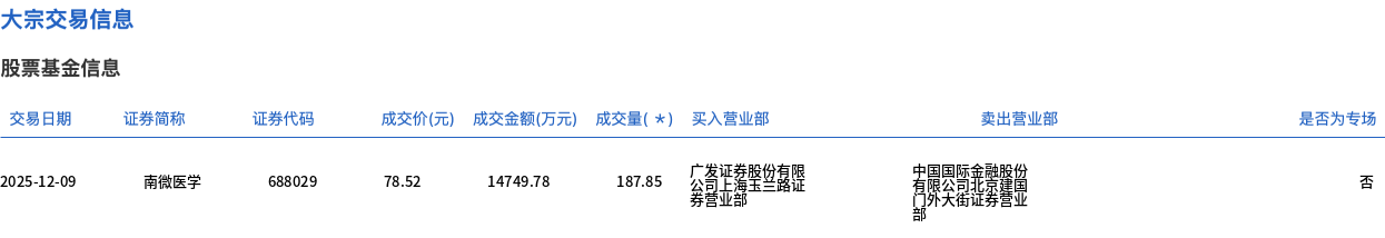 12月9日按天配资平台,南微医学大宗交易成交187.85万股,成交额1.47亿元,占当日总成交额的54.58%,成交价78.52元,较市场收盘价78.52元持平。